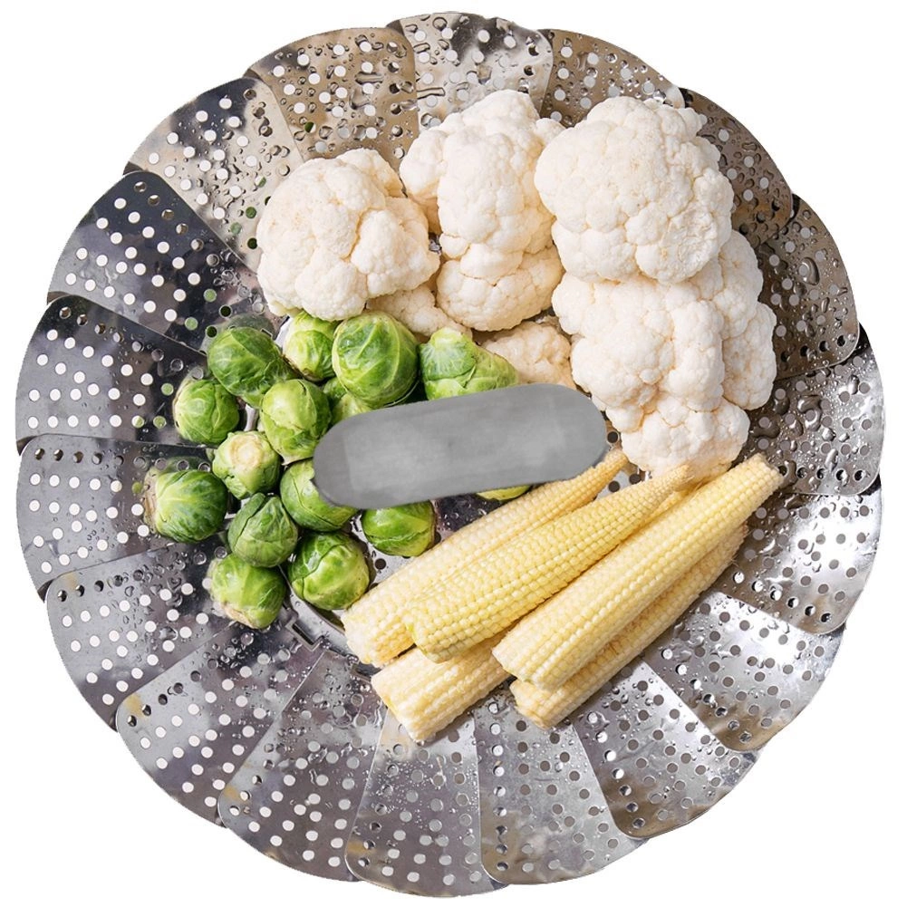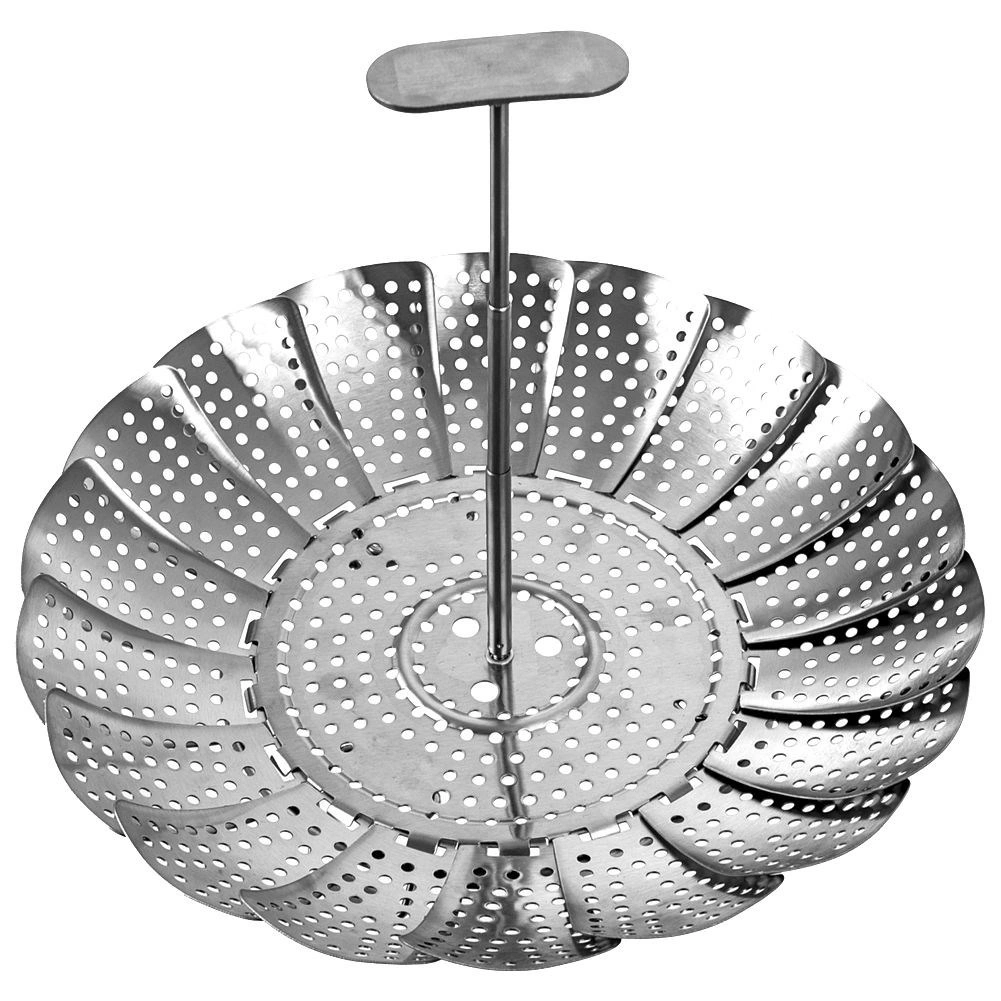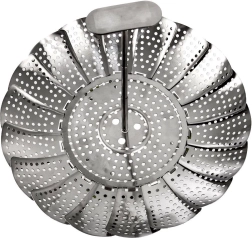 Pratique, le cuiseur vapeur pliant en acier inoxydable de qualité est idéal pour la cuisson à la vapeur. Son diamètre extensible de 14–23 cm permet une utilisation dans des casseroles de tailles variées, tandis que les « pétales » perforés assurent une circulation uniforme de la vapeur et une cuisson douce des aliments.