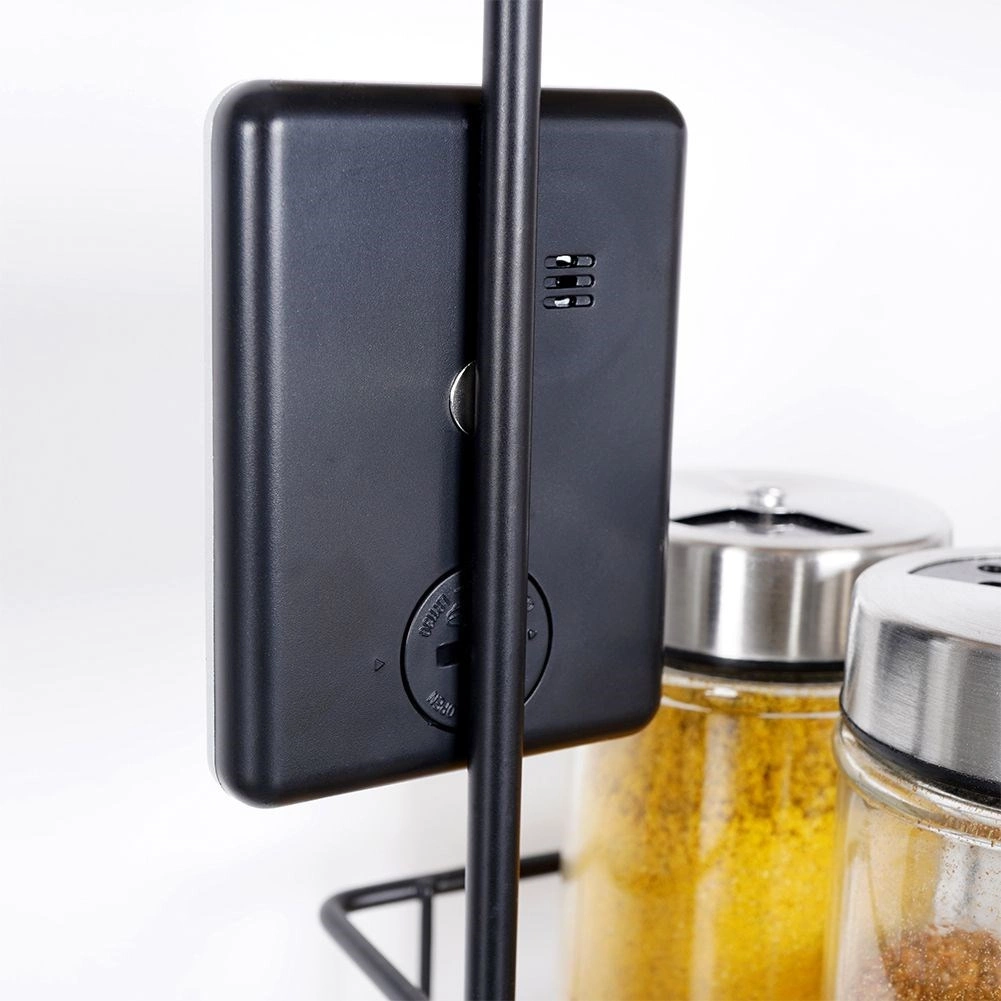 Structure en plastique résistante de couleur argent élégante avec arrière noir, légère et durable. L’aimant au dos permet une fixation sur le réfrigérateur, le four ou toute autre surface métallique, ou vous pouvez le poser librement sur le plan de travail.