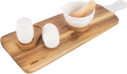 Ce set WHITELINE de 3 pièces allie design épuré et praticité. Deux pots à épices en porcelaine blanche avec décor embossé élégant sont posés sur un socle en bambou de qualité qui garde la cuisine et la table à manger bien ordonnées. Grâce aux orifices de dosage discrets, vous versez la quantité exacte de sel et de poivre pendant la cuisson comme au service.