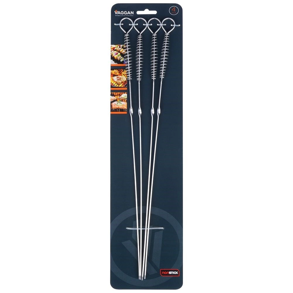 Ensemble pratique de quatre brochettes en acier inoxydable de haute qualité de 42,5 cm pour griller facilement viandes et légumes. Grâce à leur construction robuste, à leur profil plat pour un embrochage stable et à leur œillet pratique en bout pour une prise sûre, vous réussirez une cuisson uniforme au barbecue comme au four, sans que les aliments ne glissent.