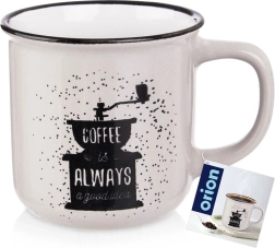 Un mug en céramique élégant de 370 ml avec anse confortable et décor noir de moulin à café, idéal pour un usage quotidien. Il offre une céramique résistante, un entretien facile au lave-vaisselle et une compatibilité micro-ondes. Parfait pour le café, le thé, le cacao et autres boissons chaudes, et grâce à sa anse confortable, il tient agréablement en main.