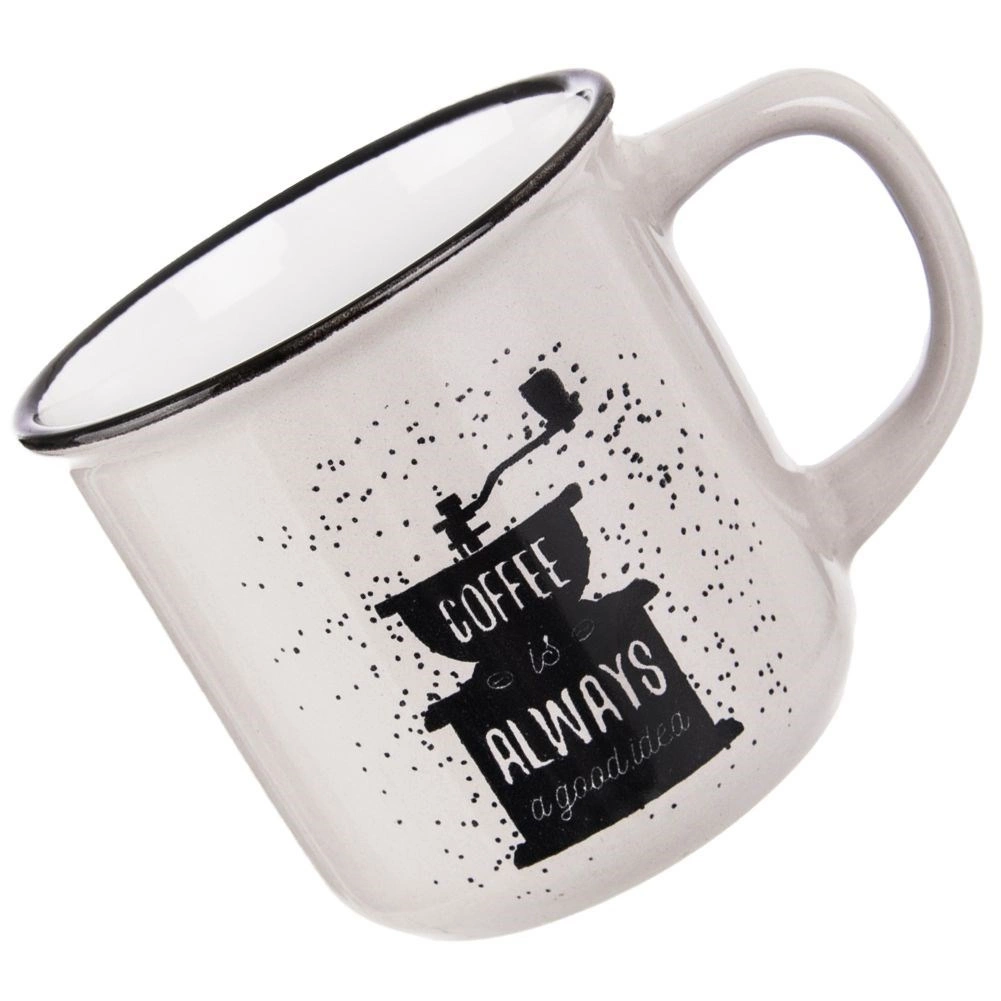 Ce mug en céramique polyvalent, blanc avec bord noir et motif de moulin à café, complètera parfaitement votre cuisine ou bureau. Sa capacité de 370 ml est idéale pour le café du matin comme pour le thé de l’après-midi. Sa forme simple et intemporelle et sa glaçure de qualité assurent un usage confortable et une longue durée de vie.