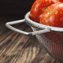 La maille inox fine retient de façon fiable même les petits morceaux d’aliments tout en assurant un écoulement rapide de l’eau – idéale pour le riz, les pâtes et les petits fruits.