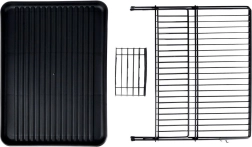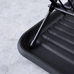 Le bac en plastique nervuré retient efficacement l’eau et se retire facilement pour la vider. Il garde le plan de travail propre et sans traces.