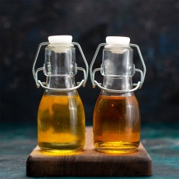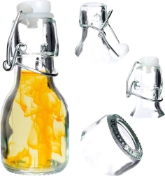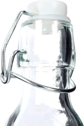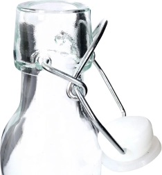 Cette bouteille compacte au style rétro est fabriquée en verre clair de qualité et convient parfaitement pour huile d’olive, huiles aromatisées, liqueurs maison, vins ou sirops de fruits. Le clip métallique avec joint en silicone crée une fermeture hermétique qui empêche les fuites et aide à préserver l’arôme et le goût.