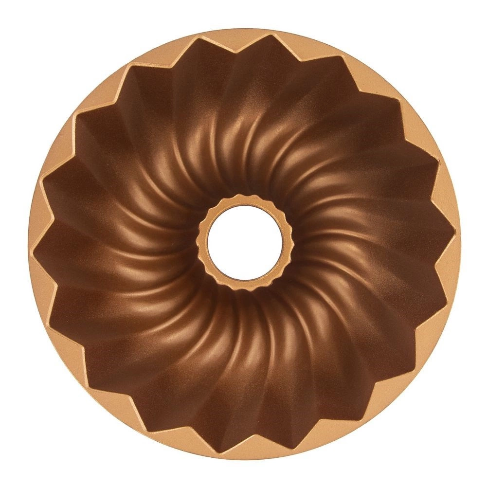 Ce moule à bundt robuste avec cheminée est idéal pour la pâtisserie du quotidien comme pour les desserts de fête. Fabriqué en aluminium de qualité avec une couche antiadhésive PFLUON à l’intérieur, il assure une répartition homogène de la chaleur et un démoulage sans problème de la pâte cuite. La finition cuivrée apporte un style unique à votre cuisine.