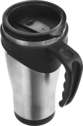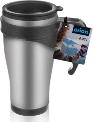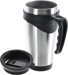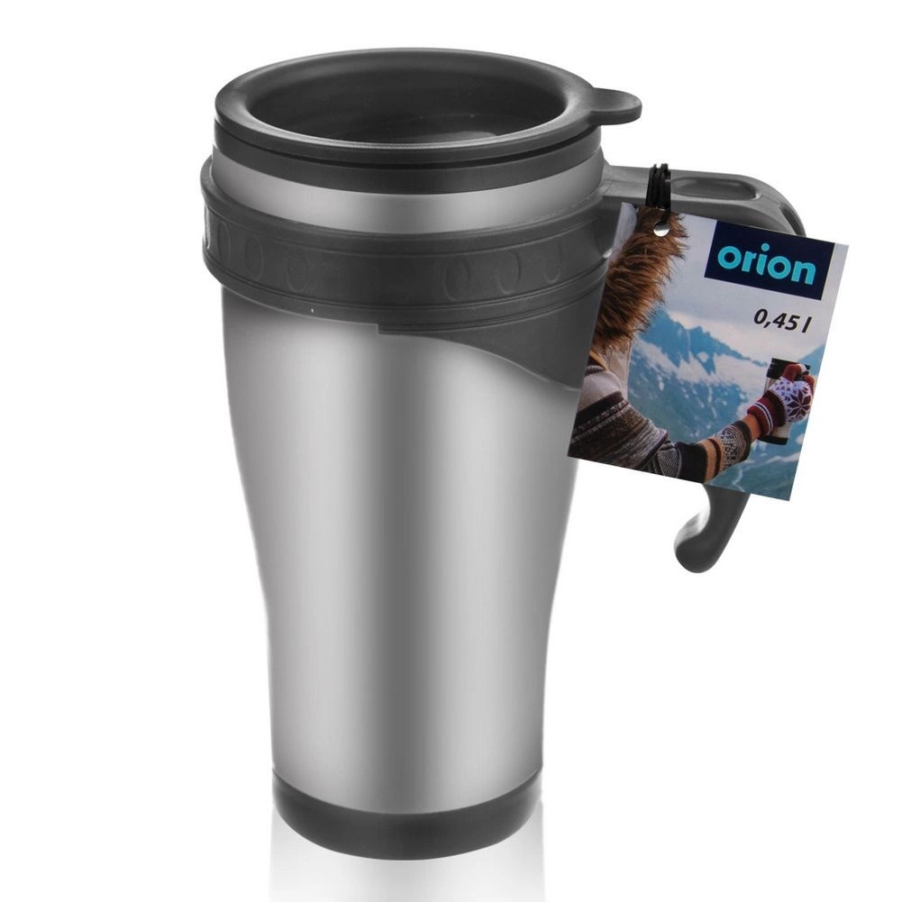 Pratique mug isotherme en acier inoxydable d’une capacité de 450 ml, qui maintient votre boisson chaude ou froide pendant longtemps grâce à l’isolation sous vide. Il possède un couvercle étanche avec anneau en silicone et une ouverture de boisson refermable, une anse ergonomique confortable et s’adapte à la plupart des porte-gobelets de voiture.