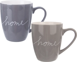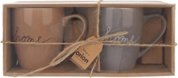 Élégant lot de deux mugs en porcelaine de 380 ml dans un emballage cadeau. Adaptés à un usage quotidien, avec anse confortable et design moderne avec l’inscription Home. Compatibles lave-vaisselle et micro-ondes. Idéals pour le café, le thé et le cacao.