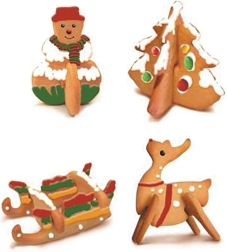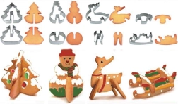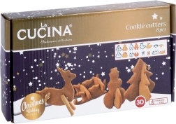 Le set comprend 8 pièces pour réaliser 4 motifs 3D différents : sapin de Noël, bonhomme de neige, renne et traîneau. Les dimensions des pièces varient approximativement en largeur de 4,5 à 9,5 cm et en longueur de 3,5 à 8,5 cm. Les emporte-pièces sont polyvalents – conviennent aussi pour le fondant et les pâtes à modeler destinées à la décoration de gâteaux et desserts.