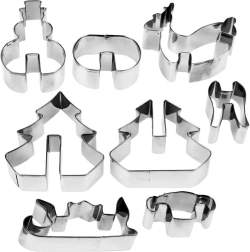 Créez des biscuits de Noël féeriques avec cet ensemble de 8 emporte-pièces en acier, qui vous aidera à cuire des biscuits et pain d’épices 3D en forme de sapin, bonhomme de neige, renne et traîneau. Grâce à l’acier inoxydable, les formes sont durables, offrent des coupes nettes et passent au lave-vaisselle.