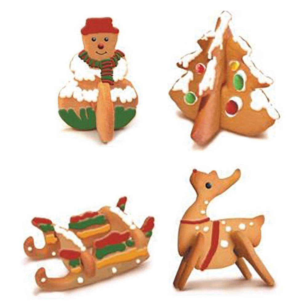 Le set découpe des pièces qui s’emboîtent après la cuisson pour créer des figurines debout – sapin, bonhomme de neige, renne et traîneau. Idéal pour la pâtisserie et les décorations de fêtes.