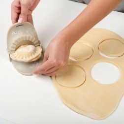 Fabriqué en plastique de qualité, résistant de couleur beige, compatible lave-vaisselle. Idéal pour les débutants comme pour les cuisiniers confirmés – parfait pour pierogi, chaussons, ravioli ou empanadas.