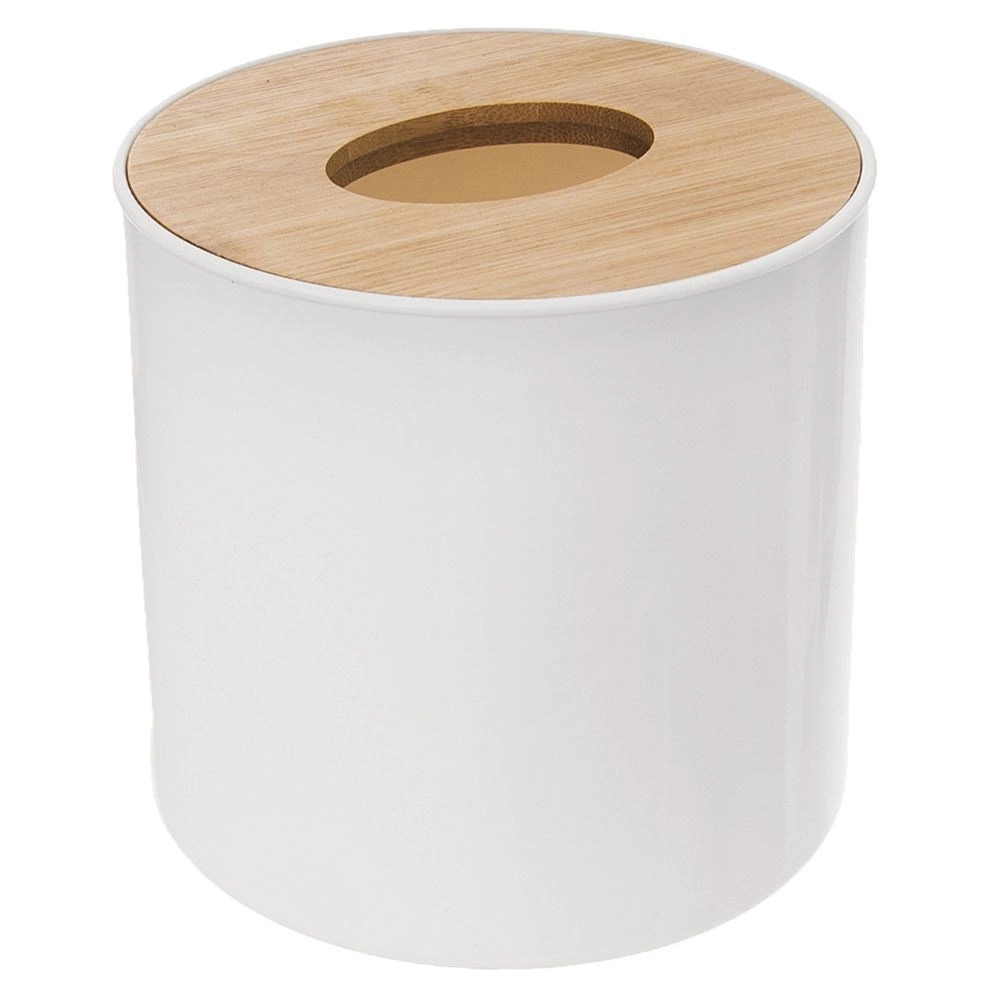 Le corps blanc et le couvercle en bambou apportent un look moderne et ordonné à la salle de bain et se marient facilement avec d’autres accessoires.