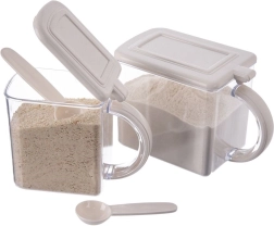 Sa conception fonctionnelle facilite l’usage quotidien : le couvercle à charnière protège de l’humidité et conserve les produits frais plus longtemps, la poignée ergonomique permet un transport aisé et la cuillère fournie assure un dosage rapide et propre. Le distributeur est peu encombrant et convient aux foyers comme à la restauration.