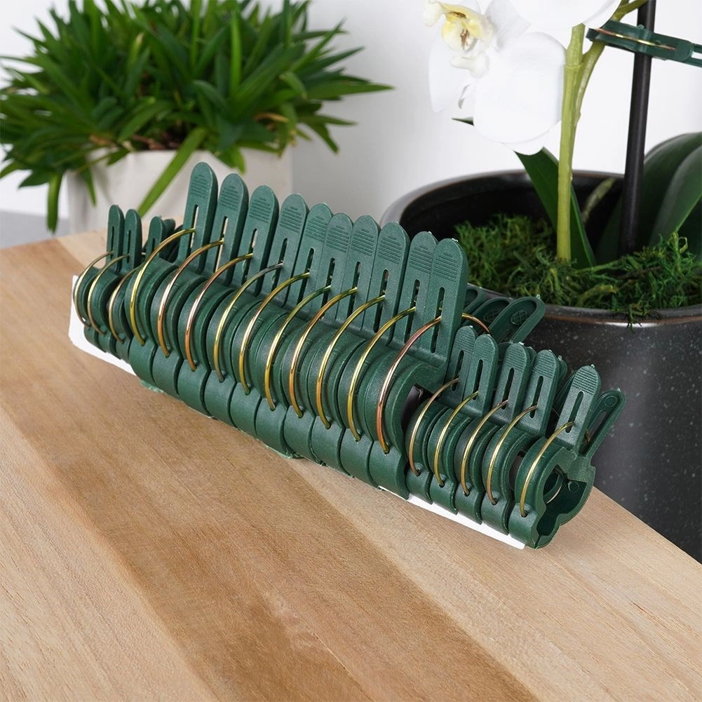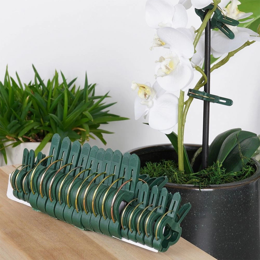 Pratique ensemble de 20 clips pour plantes en deux tailles assurant un maintien solide mais délicat pour les plantes d’intérieur comme de jardin. Conception durable en plastique avec ressort métallique permettant une fixation rapide d’une seule main, idéale pour les orchidées ainsi que pour les tomates, concombres et haricots. Réutilisables, ils stabilisent les tiges et favorisent une croissance correcte sans les abîmer.