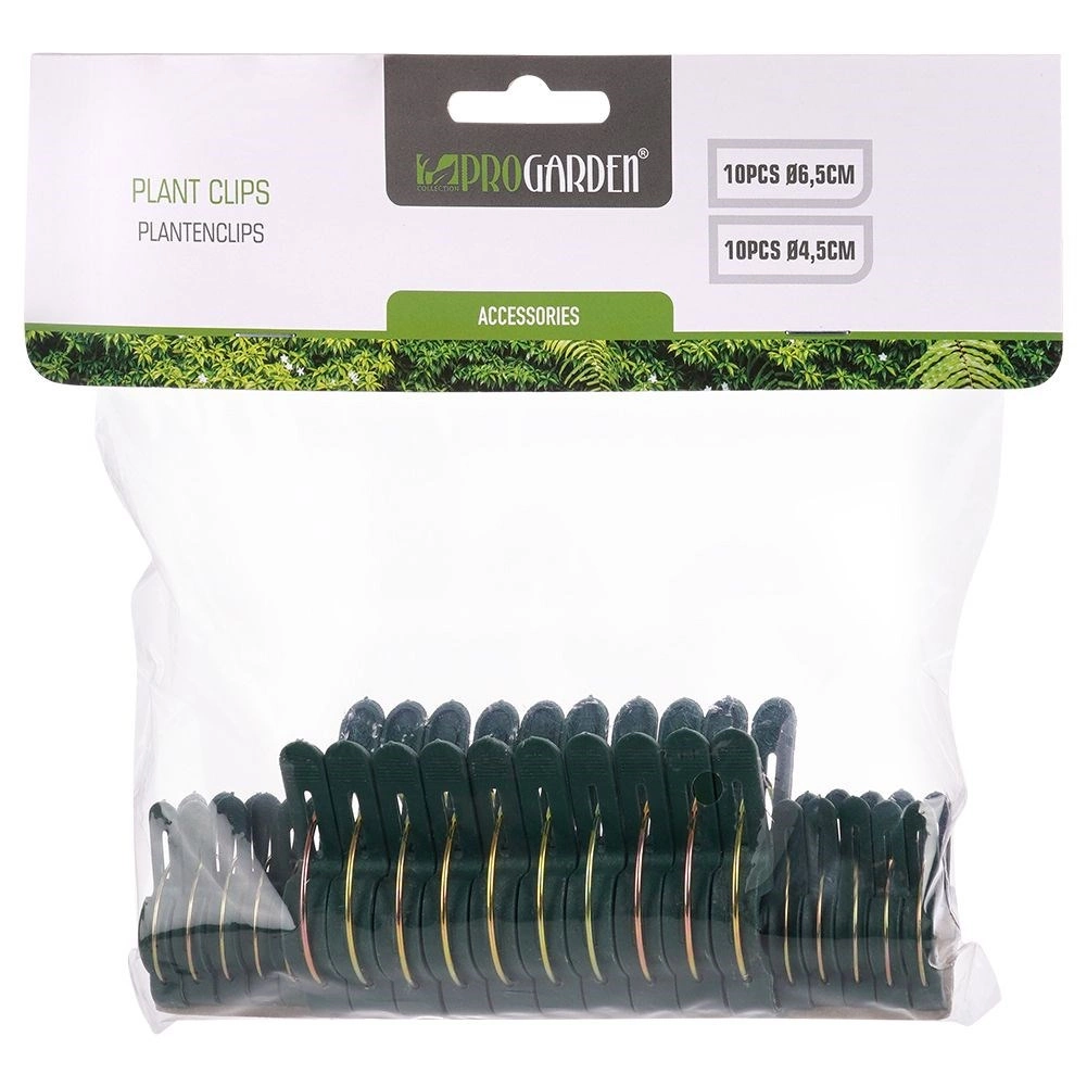 Le set de clips de jardin PROGARDEN en deux tailles (10× 4,5 cm et 10× 6,5 cm) facilite le tuteurage et la mise en forme des plantes à la maison comme au jardin. Le mécanisme à ressort, avec prise sûre, maintient les tiges contre les tuteurs ou treillis sans les comprimer.