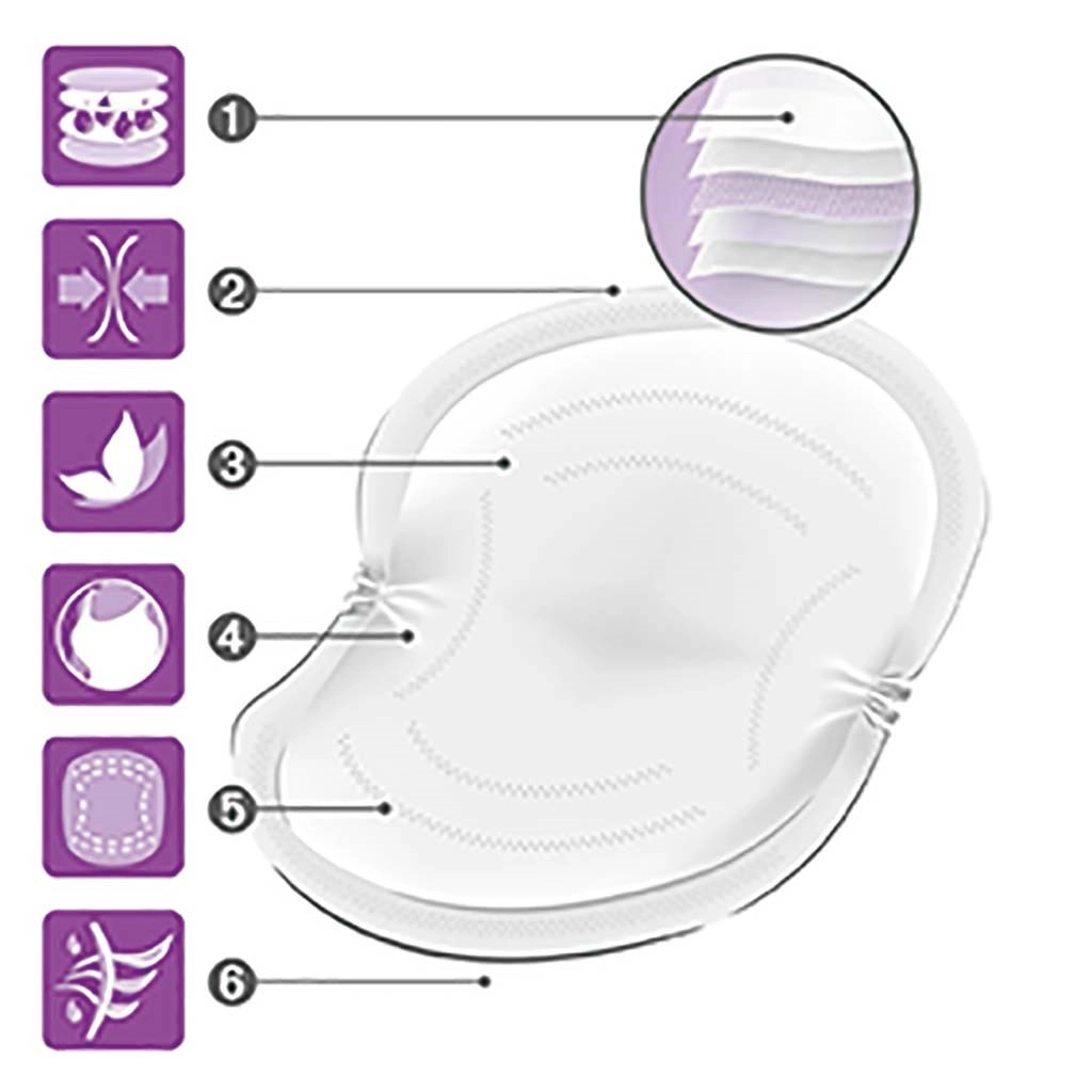 Grâce à leur forme anatomique 3D, les coussinets épousent parfaitement le corps et restent en place grâce à deux larges bandes adhésives. Chaque coussinet est emballé individuellement de manière hygiénique dans un sachet discret, idéal pour les déplacements et le sac à main.