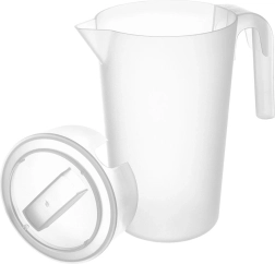 Carafe universelle en plastique résistant, au design transparent, parfaite pour l’eau, les jus, la limonade maison, le thé glacé et les compotes. Grâce à la poignée ergonomique et au bec verseur précisément profilé, le service est fluide et sans gouttes, tandis que le couvercle protège la boisson des impuretés et des insectes, à la maison comme au jardin.
