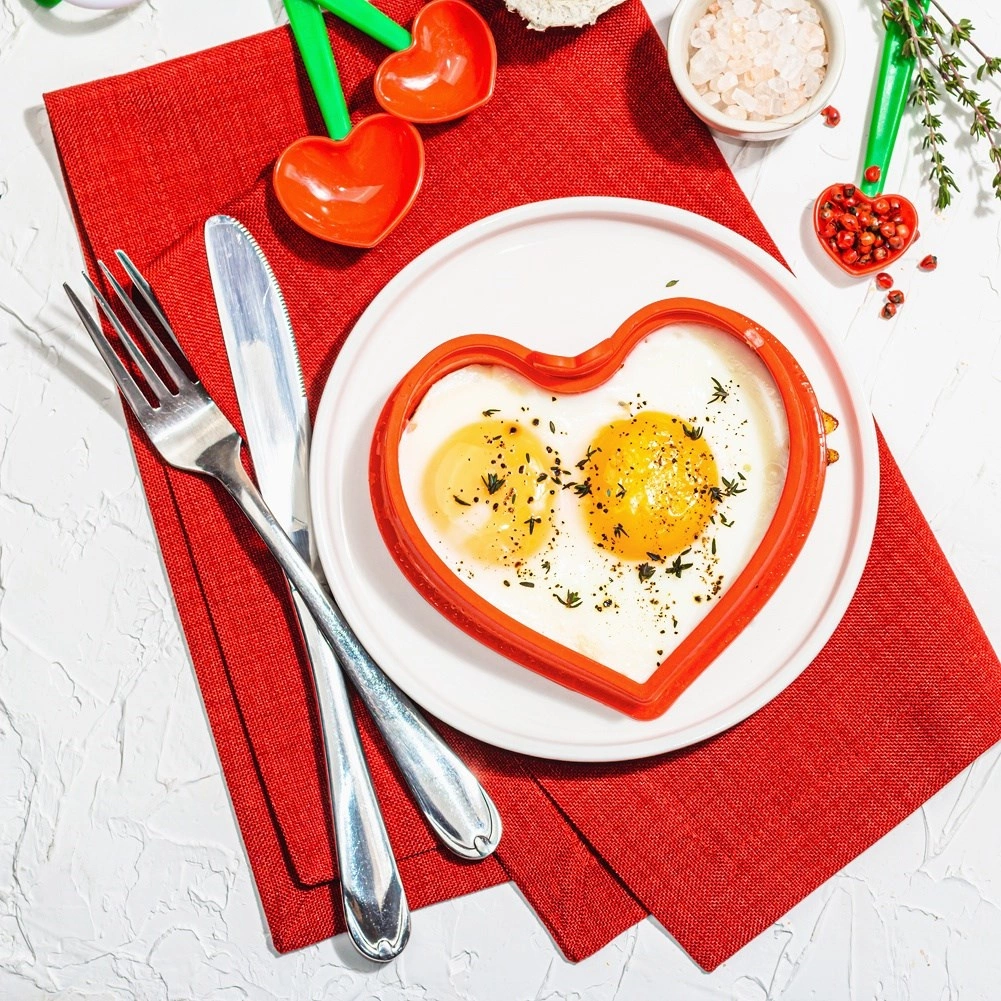 Avec ce moule en silicone pour œufs en forme de cœur, préparez facilement des œufs au plat, des mini pancakes, des omelettes et d’autres douceurs salées ou sucrées dans une forme spectaculaire. Grâce à sa surface antiadhésive, la pâte comme les œufs n’attachent pas et vous démoulez les formes aisément sans huile ni farine.