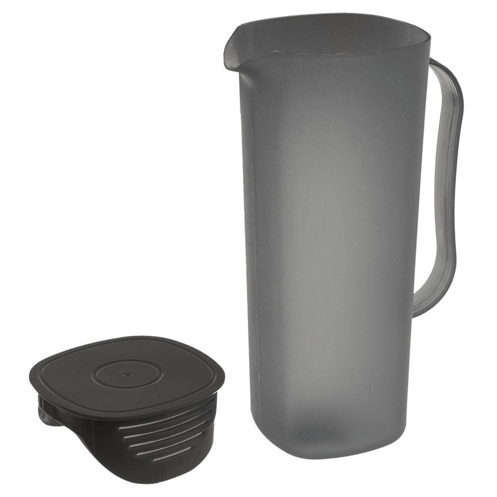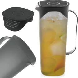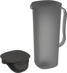 Élégant pichet en plastique avec couvercle d’une capacité de 1,8 l, idéal pour servir de l’eau, des limonades ou du thé glacé. Il possède une anse confortable, un bec verseur profilé pour un service précis et un couvercle avec filtre qui retient la glace et les fruits tout en protégeant la boisson des insectes. Léger, résistant et compatible lave-vaisselle.