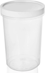 Récipient transparent, couvercle blanc