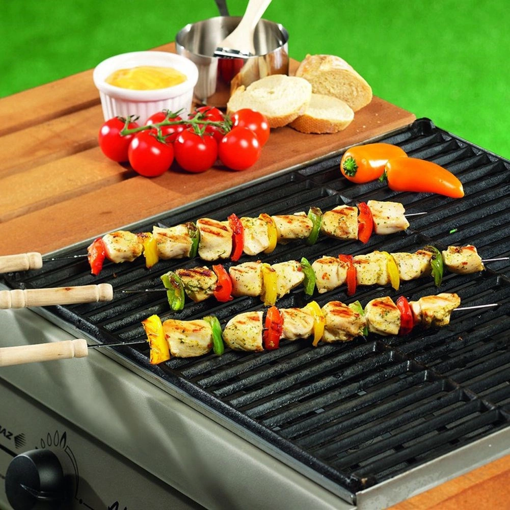 La forme et l’embout limitent le glissement des ingrédients, permettant une cuisson uniforme et une rotation aisée des brochettes.