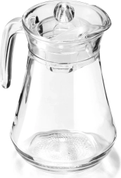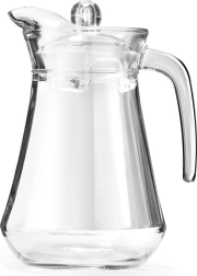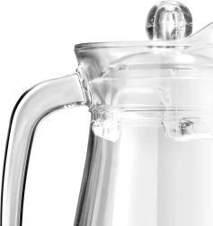 Élégante carafe en verre de 1,4 l avec couvercle pratique et poignée ergonomique pour un service confortable. Idéale pour l’eau, les jus, la limonade ou le thé glacé. Grâce à son bec verseur profilé, le service se fait sans gouttes, et le couvercle protège la boisson des impuretés et des insectes. Compatible lave-vaisselle et réfrigérateur, pour des boissons jusqu’à 60 °C.