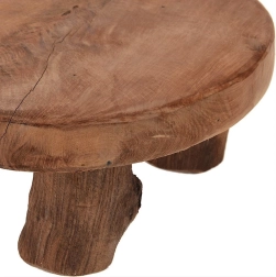 Cette planche de service ronde est fabriquée à la main en teck de qualité et repose sur des pieds solides pour une stabilité maximale et une présentation attrayante. Le veinage naturel du bois et la finition rustique apportent une touche authentique à chaque table, que vous serviez des tapas, des pâtisseries, des fromages ou de la charcuterie.
