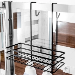L’étagère offre 3 niveaux de rangement pour shampoings, après-shampoings, savons et grands formats, ainsi que 4 crochets pratiques – deux à l’intérieur pour éponges et brosses, et deux à l’extérieur pour serviettes ou peignoirs. Suspendez-la simplement sur le bord supérieur de la paroi vitrée de la douche et retirez-la tout aussi facilement à tout moment.