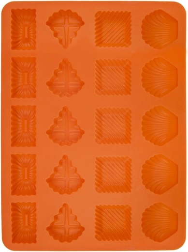 Avec ce moule en silicone polyvalent, vous préparez biscuits, pralines et chocolats de formes variées. Le matériau est léger, souple et non poreux – il n’absorbe ni les odeurs ni les saveurs et, grâce à sa surface antiadhésive, la pâte n’attache pas et les pièces finies se démoulent aisément, souvent sans utiliser de matière grasse ni de farine.