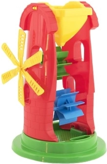 Encouragez la créativité de vos enfants avec ce moulin coloré pour le sable et l'eau. Ce moulin fonctionnel permet de verser du sable ou de l'eau dans la partie supérieure et de regarder les roues tourner, ce qui est un grand amusement pour les enfants.