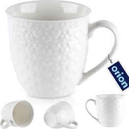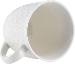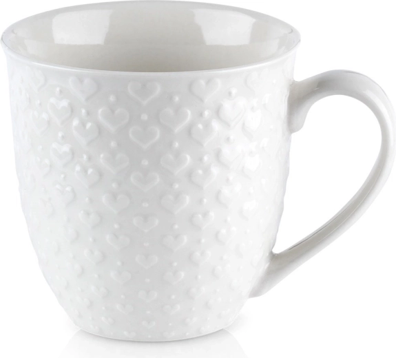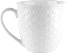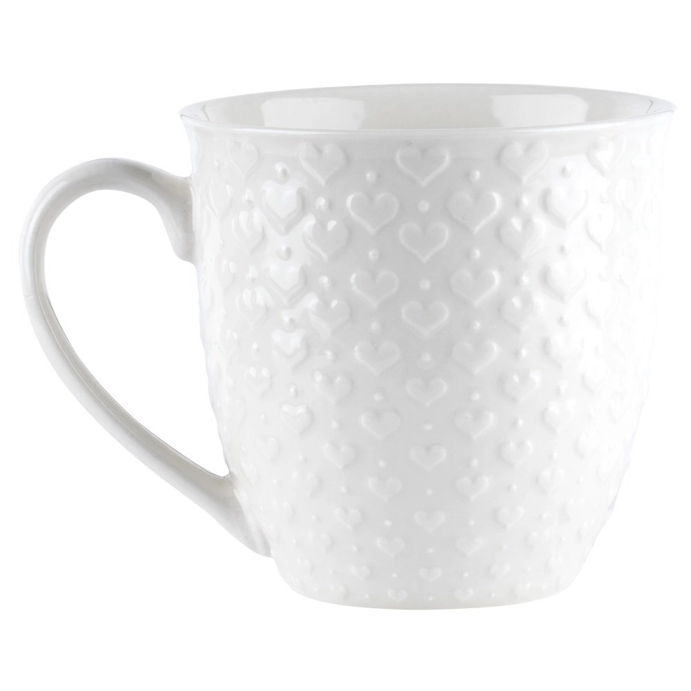 Profitez de votre café ou thé préféré dans un grand volume de 580 ml. Ce mug blanc en céramique avec décor en relief de petits cœurs allie élégance et praticité pour des moments de détente au quotidien. L’anse ergonomique est agréable en main et assure une prise sûre.