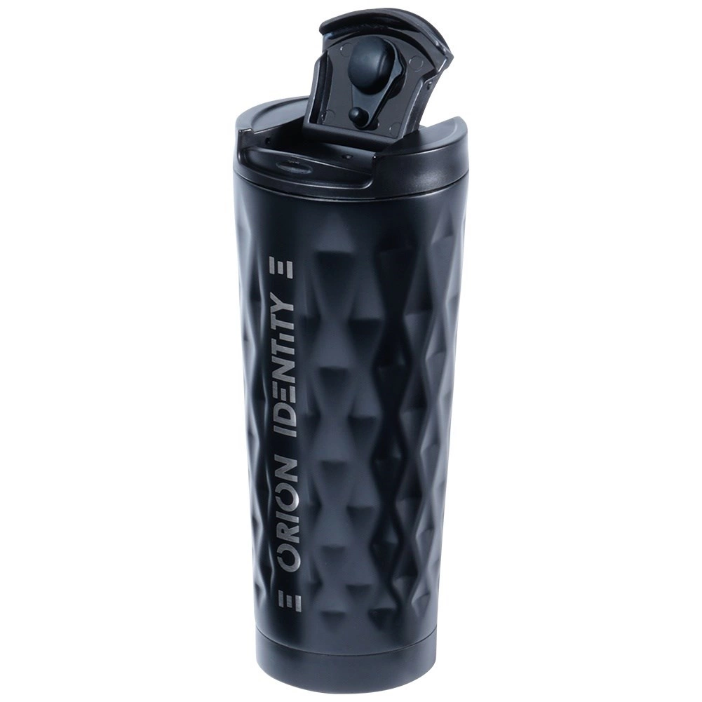 Profitez de votre boisson préférée partout : en voyage, au travail ou à la maison. Ce mug isotherme ORION en acier inoxydable noir mat est conçu pour un usage quotidien : durable, moderne et, grâce à sa double paroi avec isolation sous vide, il maintient efficacement la température. Le couvercle avec insert d’étanchéité en silicone minimise les fuites, tandis que l’ouverture de boisson verrouillable permet de siroter confortablement sans dévisser entièrement le couvercle.