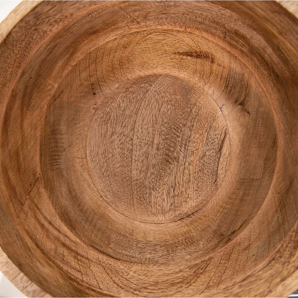 Élégant bol en bois de manguier de 25 cm de diamètre et d’un volume de 3 l, idéal pour servir salades, fruits et en-cas. Grâce au matériau naturel, il est résistant à l’humidité, possède une surface à séchage rapide et n’absorbe pas les odeurs. Les rainures blanchies créent un design unique qui s’accorde parfaitement avec toute salle à manger ou cuisine.