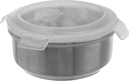 Cette boîte ronde en inox est une excellente aide pour conserver et transporter les aliments à la maison, au travail ou en voyage. Le couvercle transparent avec quatre clips robustes et un joint en caoutchouc assure une étanchéité fiable et une fraîcheur prolongée. Le bol en acier inoxydable de qualité est durable, hygiénique et facile à nettoyer.