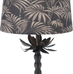 Cette lampe de table très élégante allie élégance classique et design moderne. L’abat-jour textile noir avec un motif doré de feuilles crée une atmosphère agréable et devient un élément décoratif marquant dans le salon, la chambre, le bureau ou l’espace de travail. La base en métal à l’aspect patiné confère à la lampe un caractère vintage et une sensation de stabilité.