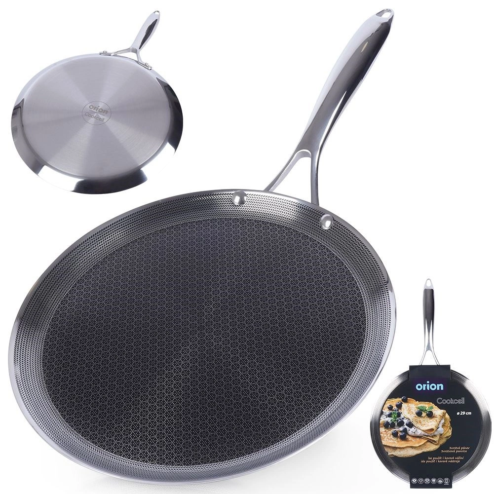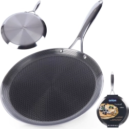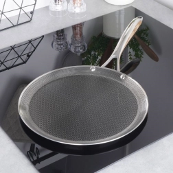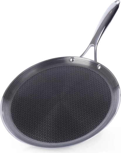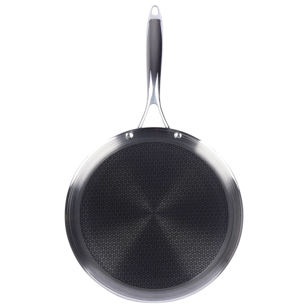 Crêpière premium en acier inoxydable avec revêtement hybride antiadhésif pour une cuisson rapide et uniforme. Compatible avec tous types de plaques, y compris induction, four jusqu’à 260 °C et lave-vaisselle. Résistante aux rayures, permet l’utilisation d’ustensiles métalliques et son bord bas facilite le retournement des crêpes, pancakes et omelettes.