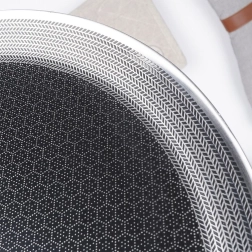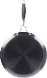 La surface texturée à structure hexagonale/nid d’abeille offre une excellente antiadhérence, une résistance aux rayures et la possibilité d’utiliser des outils métalliques.