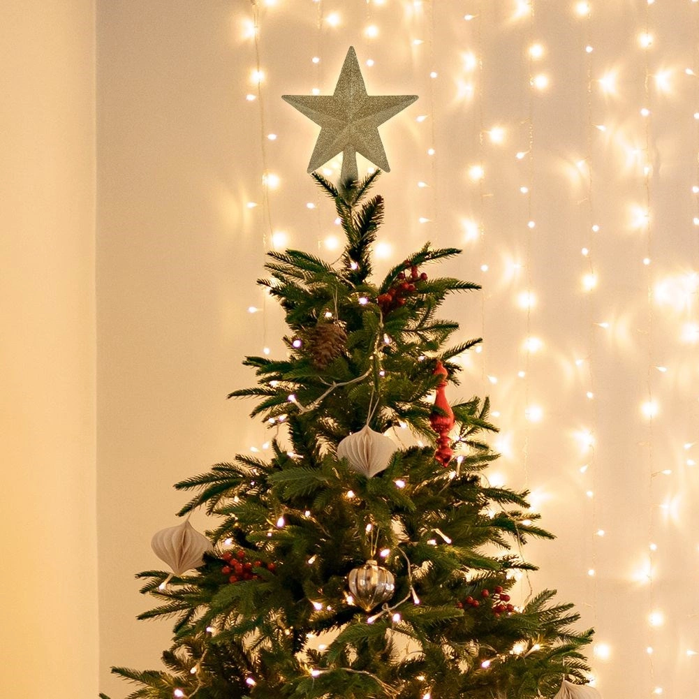 Une pointe de sapin élégante en forme d’étoile au fini pailleté doré apporte à votre décoration un éclat luxueux et une ambiance festive. Fabriquée en matériau incassable, elle est sûre pour les enfants comme pour les animaux, et grâce à son cône pratique, elle se pose facilement et de manière stable au sommet du sapin.