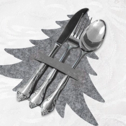 Apportez une touche unique à votre table de fête. Les étuis de couverts en feutre gris en forme de sapin de Noël mettent en valeur votre dressage et maintiennent les couverts ensemble. Grâce aux fentes astucieuses, l’insertion et le retrait des couverts sont rapides et pratiques, tandis que la poche accueille trois pièces – cuillère, fourchette et couteau.