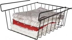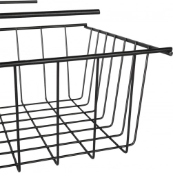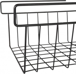 Pratique panier suspendu sous étagère en métal robuste de couleur noire qui agrandit l’espace de rangement en un instant. Grâce à l’installation sans outils, il se glisse simplement sur l’étagère et offre immédiatement de la place pour des serviettes, textiles, accessoires de cuisine ou fournitures de bureau. La structure filaire ouverte garantit une vue d’ensemble, une aération et un accès rapide aux objets rangés.