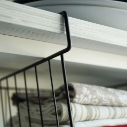 Glissez simplement le panier sur l’étagère – aucun perçage ni collage. En quelques secondes, vous créez un nouvel espace de rangement sous l’étagère existante.