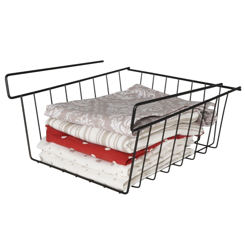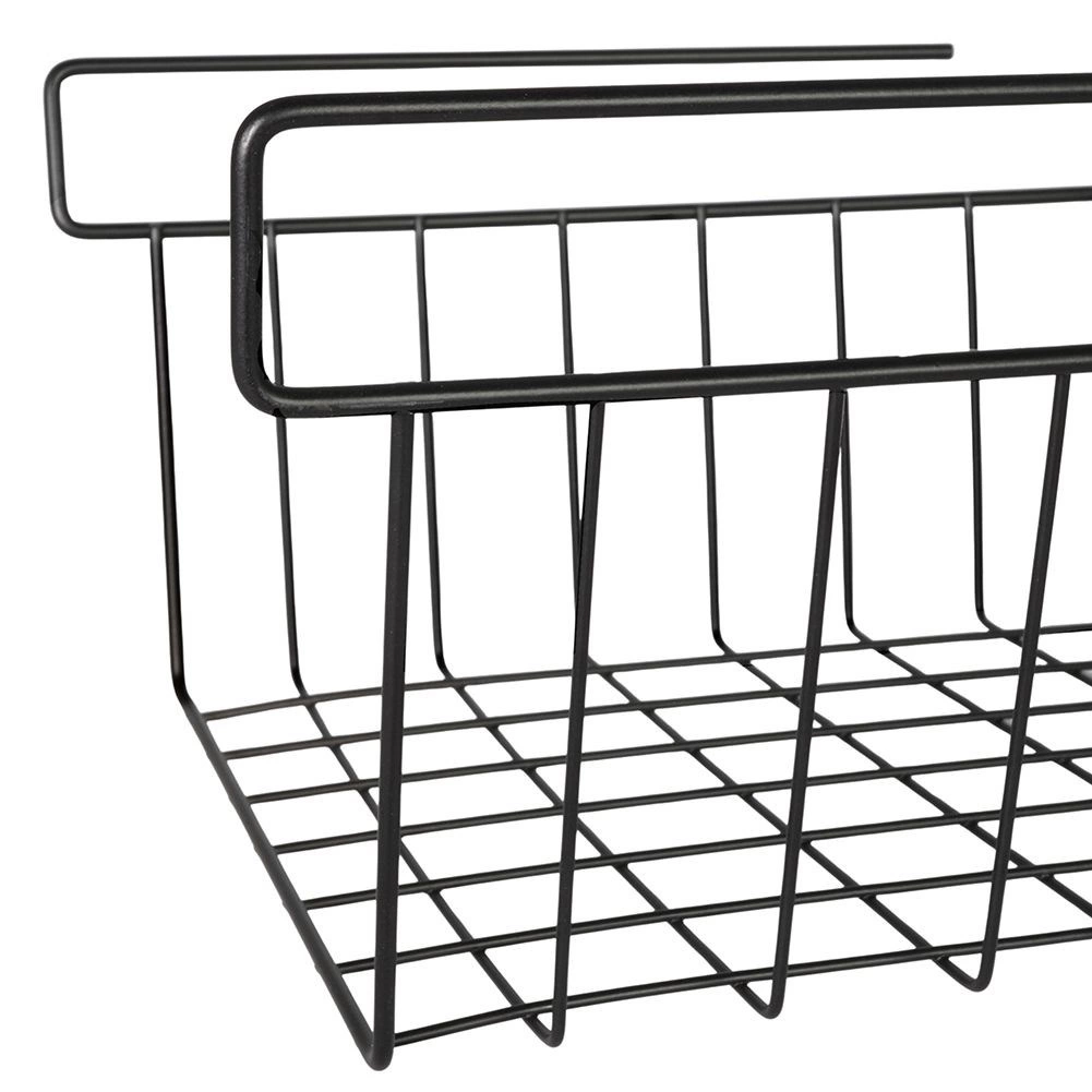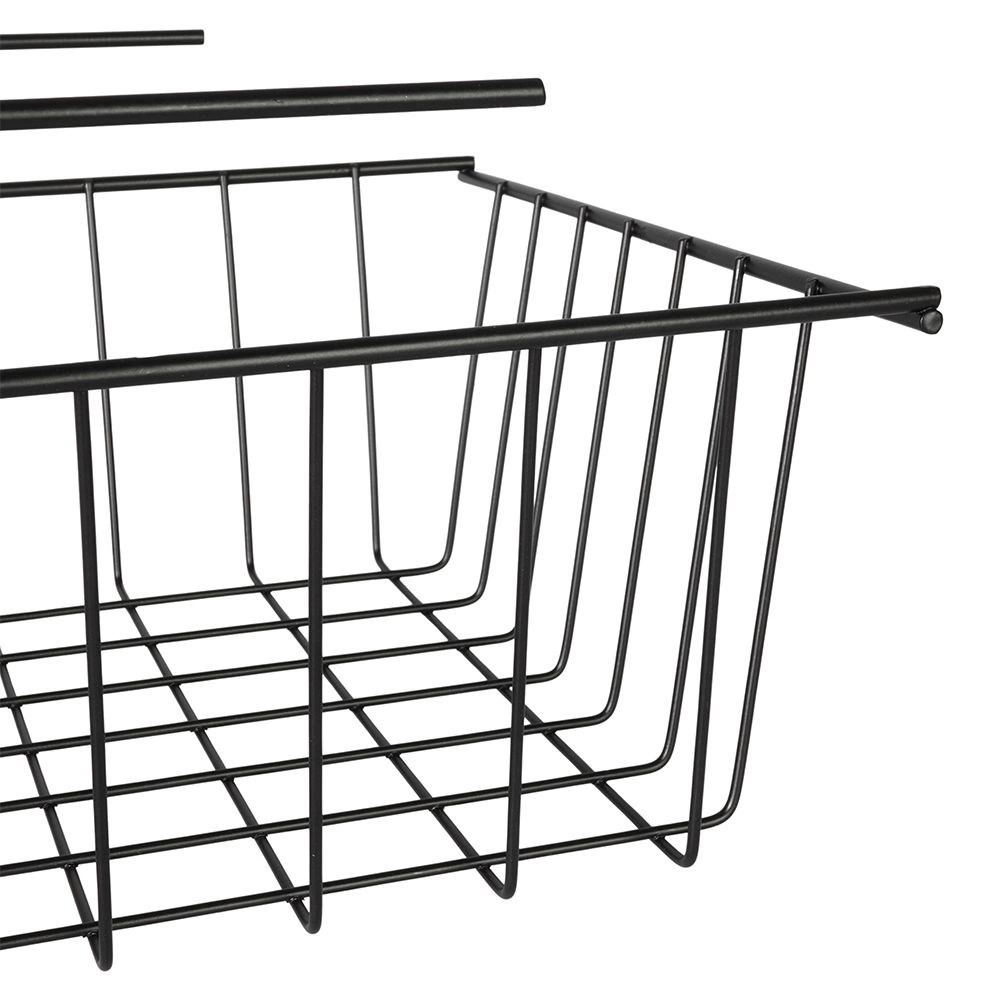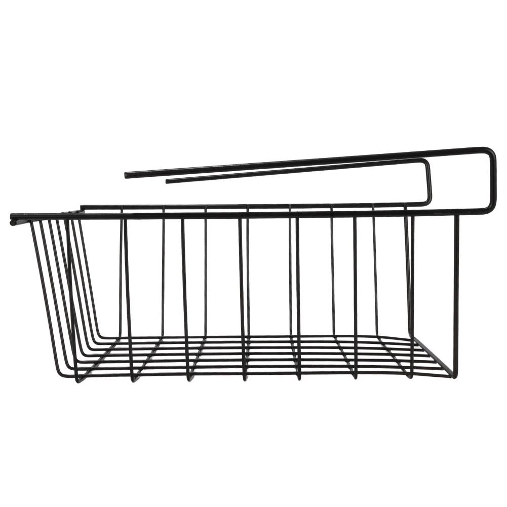 Organisez la cuisine, la salle de bain, le dressing et le bureau avec ce panier suspendu sous étagère. Sa structure métallique de style industriel/loft est solide et durable, et les parois filaires ouvertes offrent une excellente visibilité du contenu ainsi qu’une bonne circulation de l’air. Sans perçage ni outils : il suffit de le glisser sur le bord de l’étagère pour exploiter instantanément l’espace inutilisé en dessous.