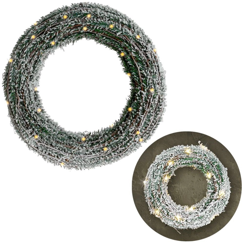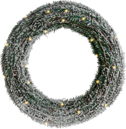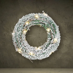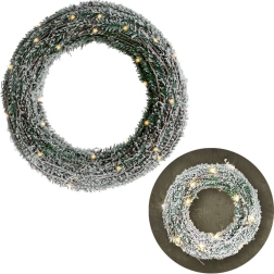 Créez une ambiance féérique avec cette couronne décorative qui reproduit fidèlement des aiguilles enneigées et diffuse une douce lueur grâce à 30 LED chaudes. Grâce à l’alimentation par piles, vous l’installez où vous voulez – sur une porte, au-dessus de la cheminée, à la fenêtre ou sur une étagère – sans câbles visibles ni installation complexe.