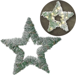 Les 40 LED à lumière blanc chaud éclairent uniformément la forme de l’étoile, tandis que la fonction minuterie éteint automatiquement la lumière après 6 heures et la rallume après 18 heures. La décoration est conçue pour un usage intérieur et convient parfaitement comme couronne de Noël sur la porte ou comme élément lumineux indépendant.