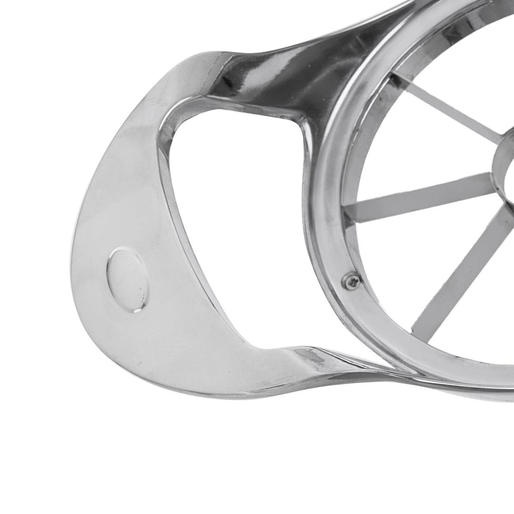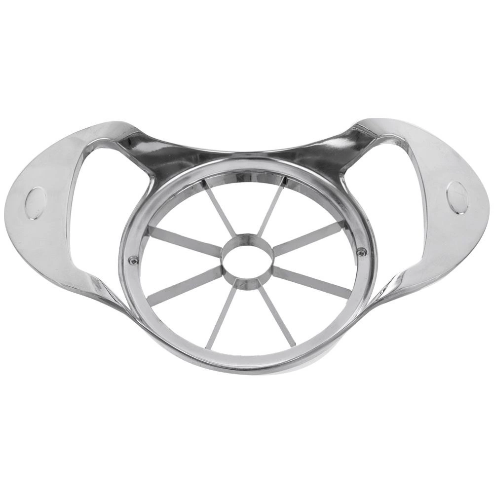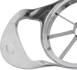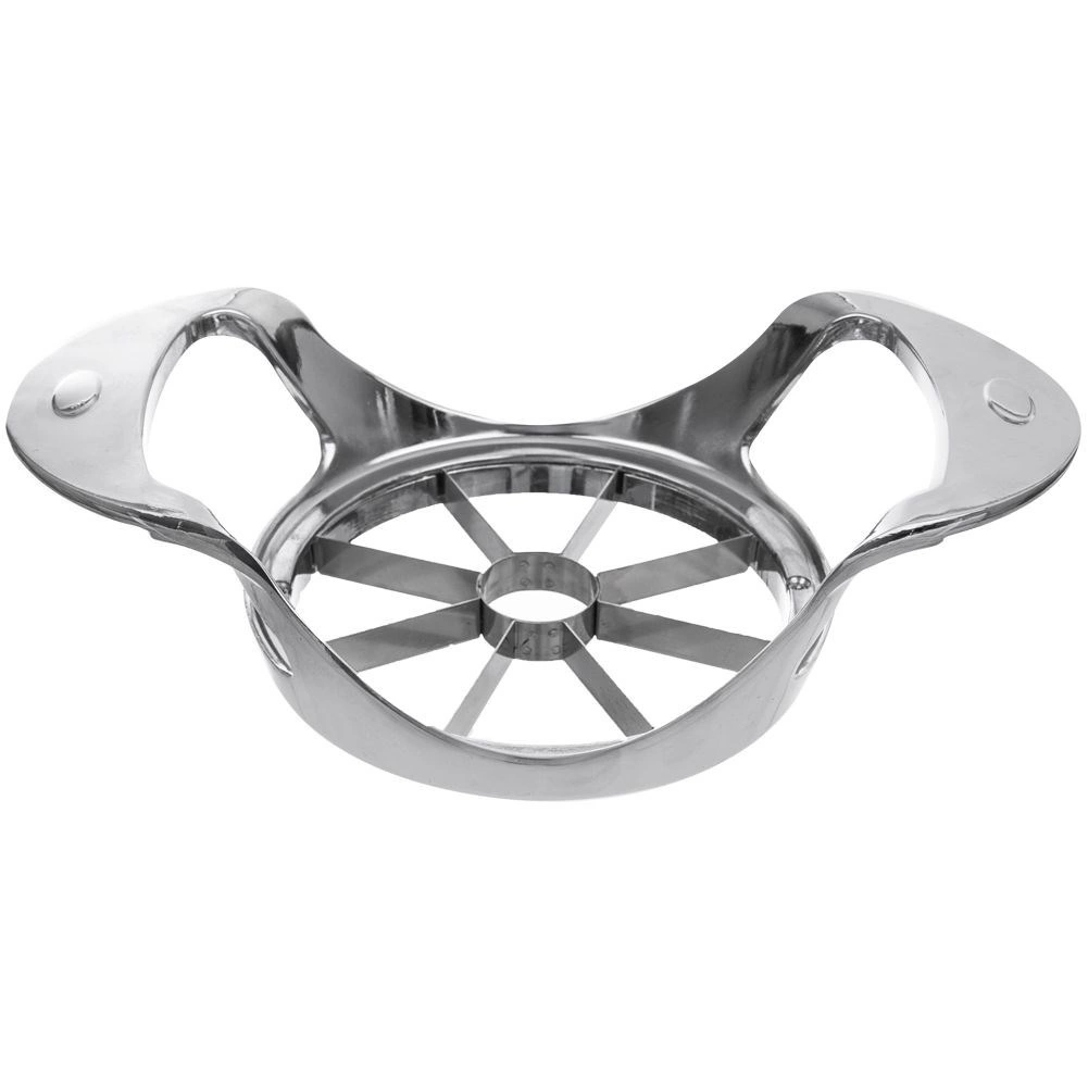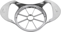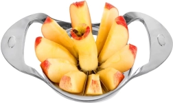 Ce coupe-pomme robuste en acier inoxydable de qualité, au fini argenté élégant, gère des pommes jusqu’à 9 cm de diamètre environ. D’une seule pression, il produit des quartiers réguliers tout en retirant le trognon – idéal pour les collations, salades, desserts et pâtisseries.