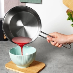 Élégante casserole en acier inoxydable 304, un allié fiable pour préparer des sauces, des soupes, réchauffer ou mijoter. Le fond multicouche accumule la chaleur et la répartit uniformément, pour une cuisson plus rapide avec moins d’eau et un minimum de matière grasse – vous préservez ainsi saveurs, vitamines et minéraux.