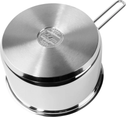 Pratique casserole en acier inoxydable ANETT de 20 cm de diamètre et 3,6 l de volume, idéale pour les sauces, soupes et le réchauffage. Fabriquée en acier inoxydable 304 durable avec surface extérieure polie et intérieure mate pour un entretien facile. Grâce au fond acutech multicouche, elle accumule et répartit la chaleur uniformément, est économe en énergie et convient à tous les types de plaques, y compris l’induction. La longue poignée confortable permet une manipulation sûre et un accrochage facile.