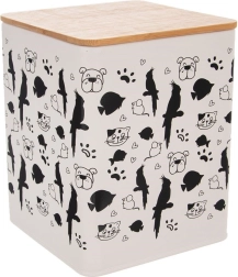 Un contenant élégant et fonctionnel pour un stockage pratique et hygiénique de la nourriture pour chiens, chats, oiseaux et petits rongeurs. Le corps en métal blanc est solide et durable, le couvercle en bois de bambou avec joint en silicone assure une fermeture hermétique et protège le contenu de l’humidité ainsi que de la perte d’arôme.