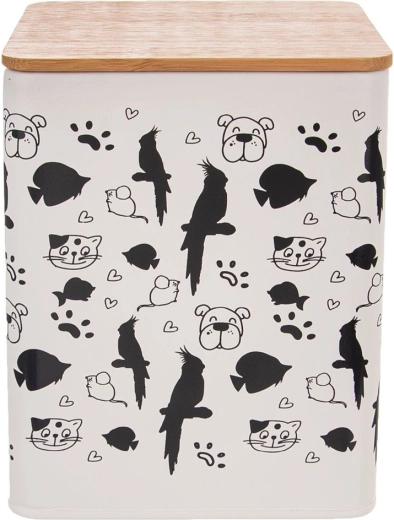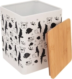 Un élégant récipient en métal de 3 l qui maintient croquettes et friandises fraîches plus longtemps. Ses dimensions compactes 14 × 14 × 17 cm, son couvercle en bambou avec joint en silicone pour une étanchéité parfaite, en font un accessoire résistant, pratique et, grâce à son motif animalier, également décoratif pour votre cuisine.